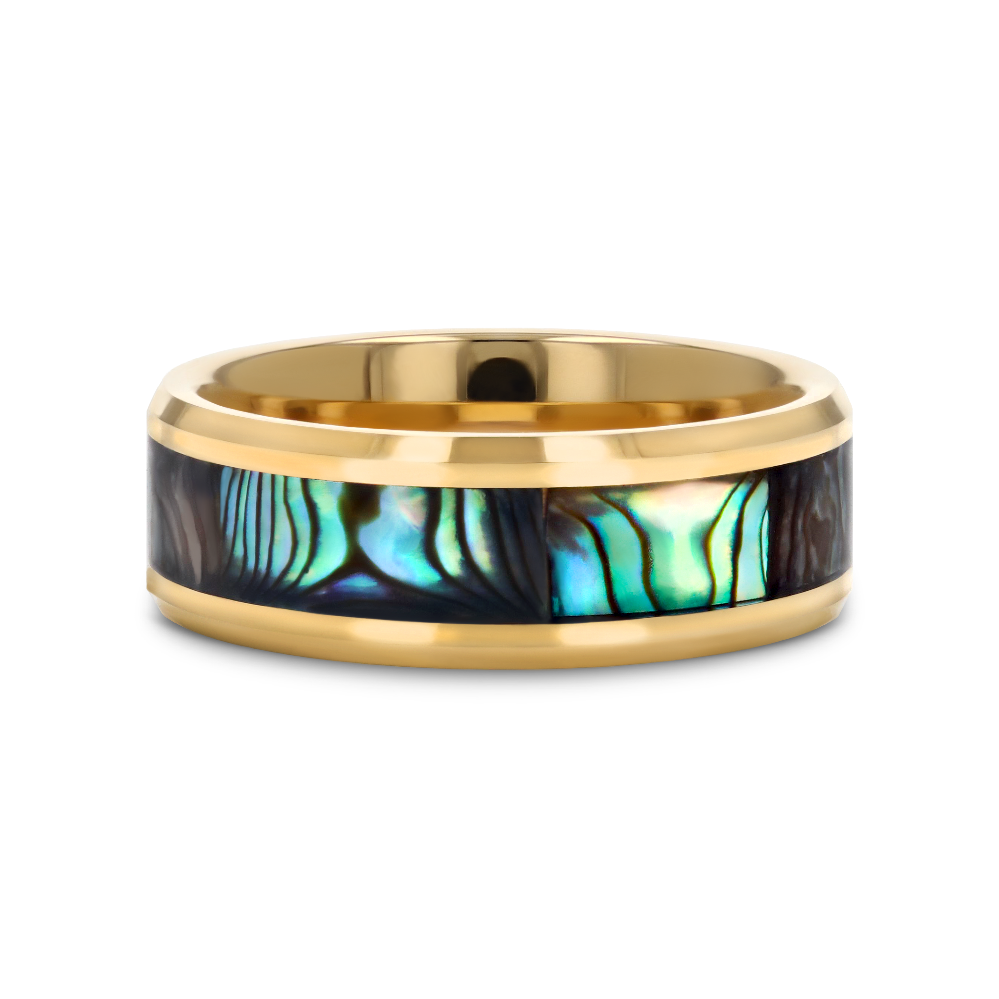 Thorsten SHORELINE Gold-Plated Tungsten Wedding Band with Mother of Pearl Inlay - 8mm