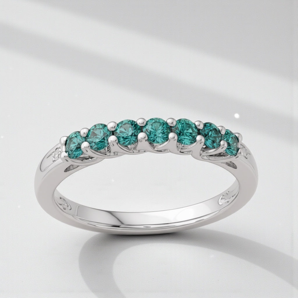 Bague en or blanc 10 carats avec alexandrite et diamants à 7 pierres