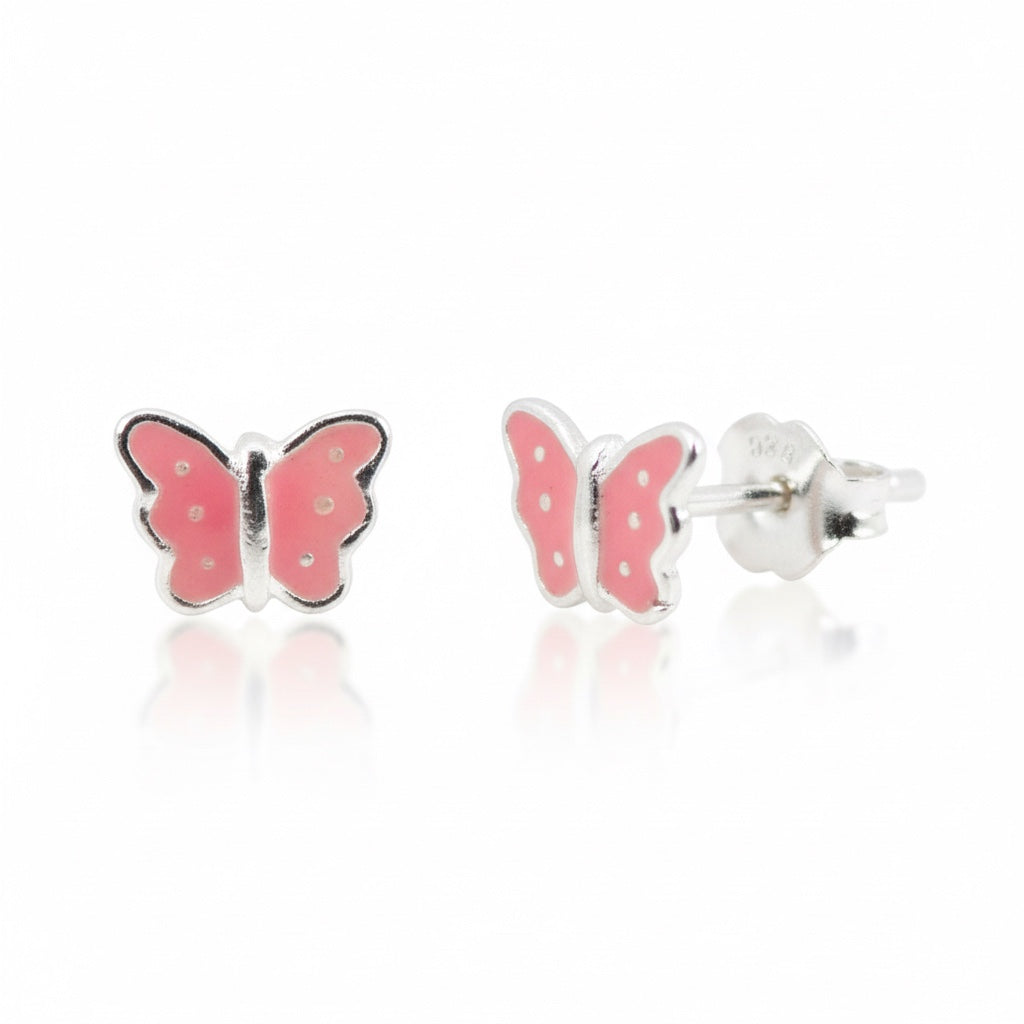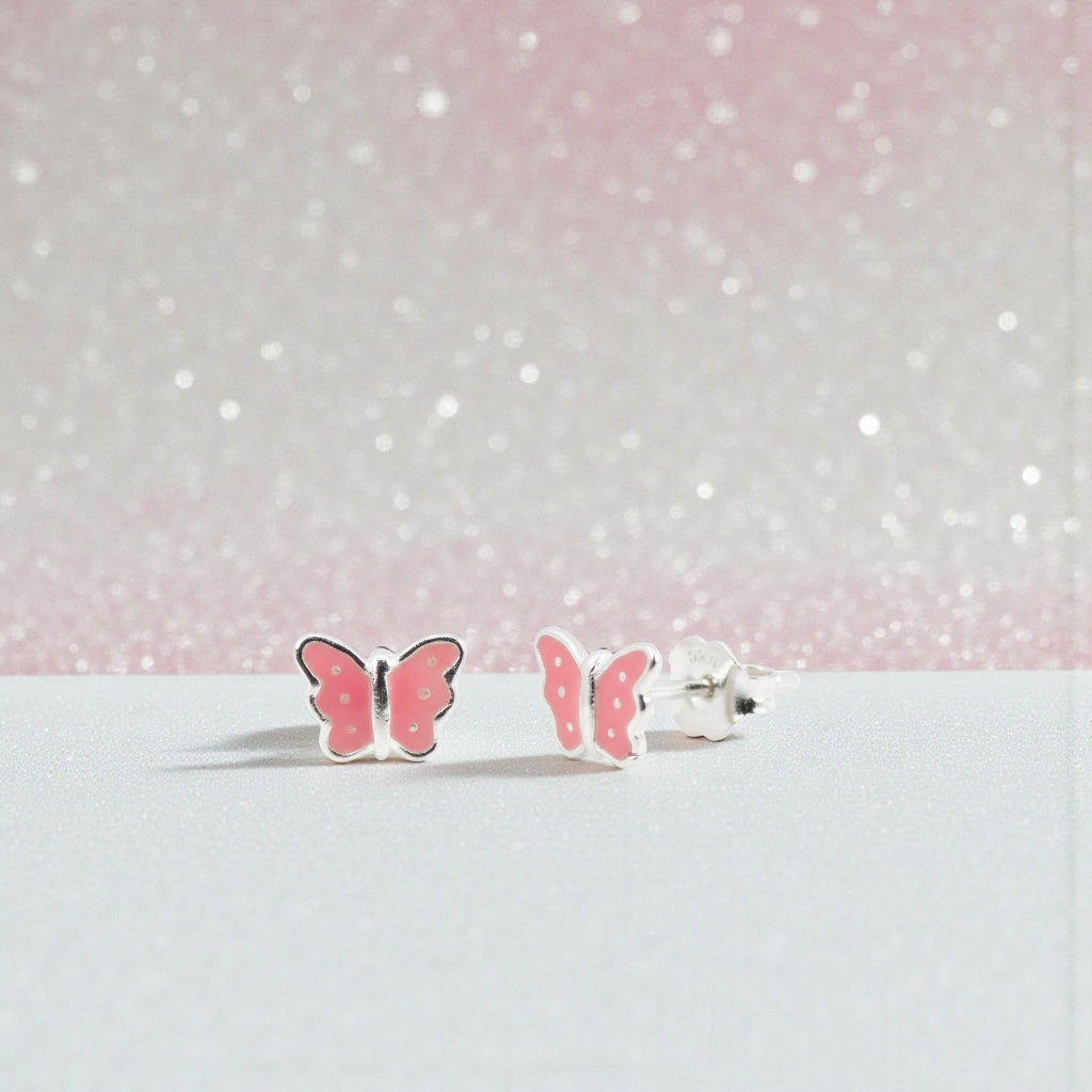 Boucles d'oreilles papillon rose pour enfants en argent sterling