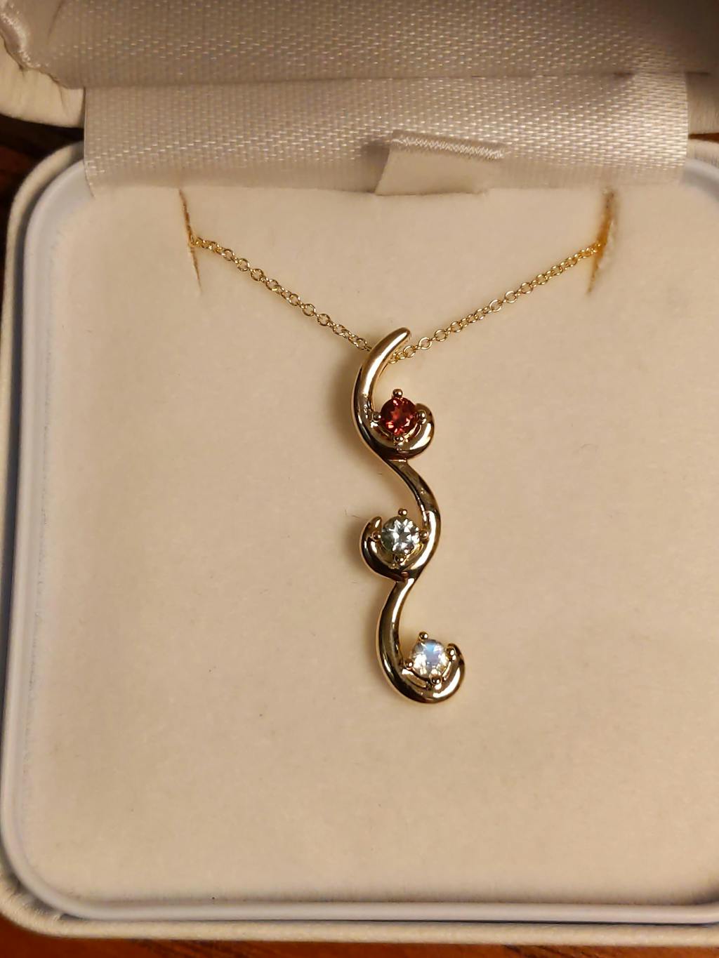 This necklace is beautiful. It's everything I was hoping for. Amy went out of here way to make the delivery exceptional as well. I was staying out of town and needed it shipped to my hotel. She got the stones set quickly and securely and got in touch with me to double check my delivery instructions and made sure it was delivered at just the right time. Exceptional service and fantastic product!