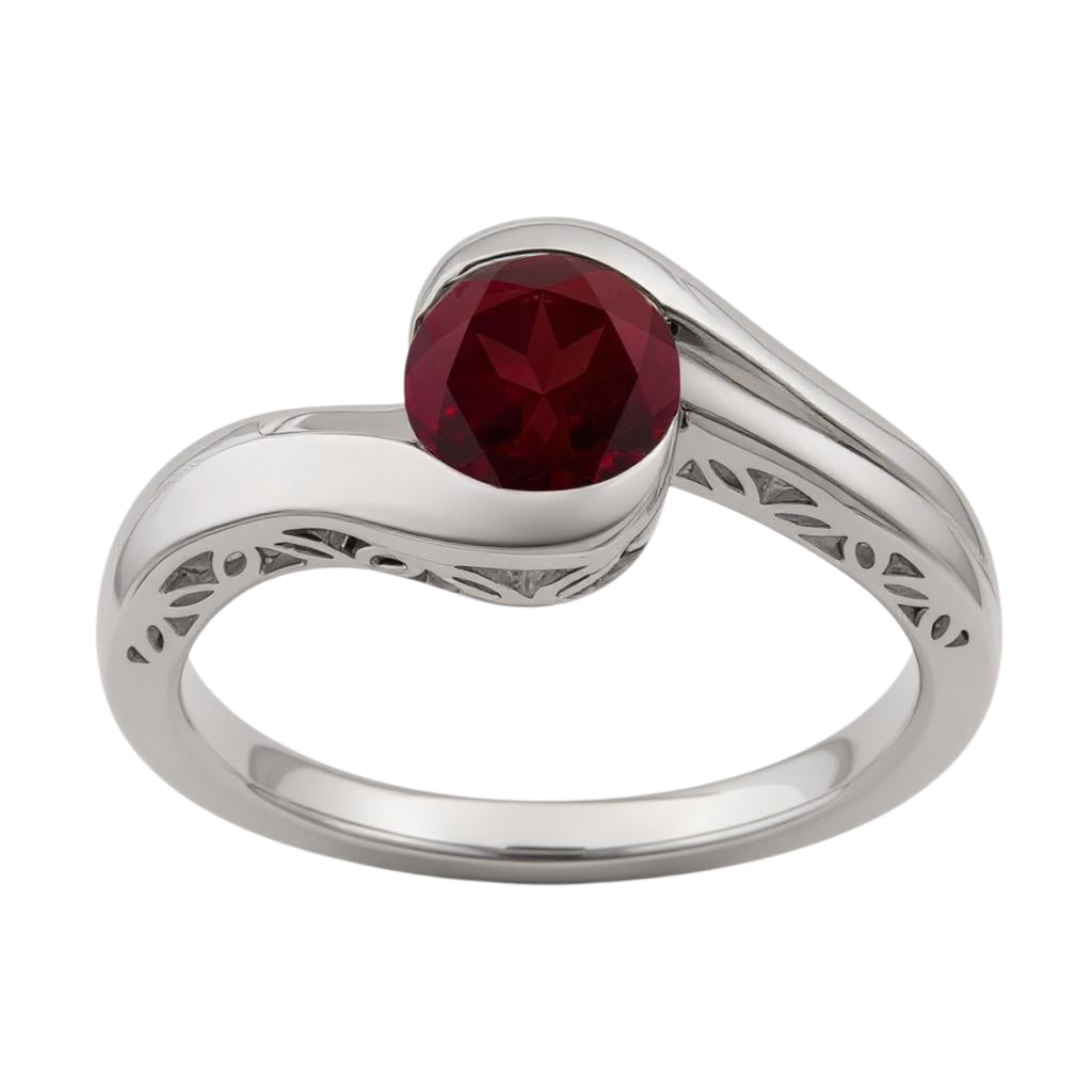 10k or 14k White Gold Round Gemstone Filigree Detailed Ring