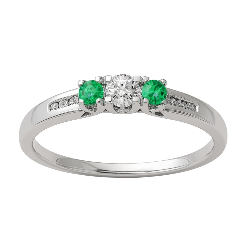 14k White Gold Diamond & Emerald 3-Stone Ring