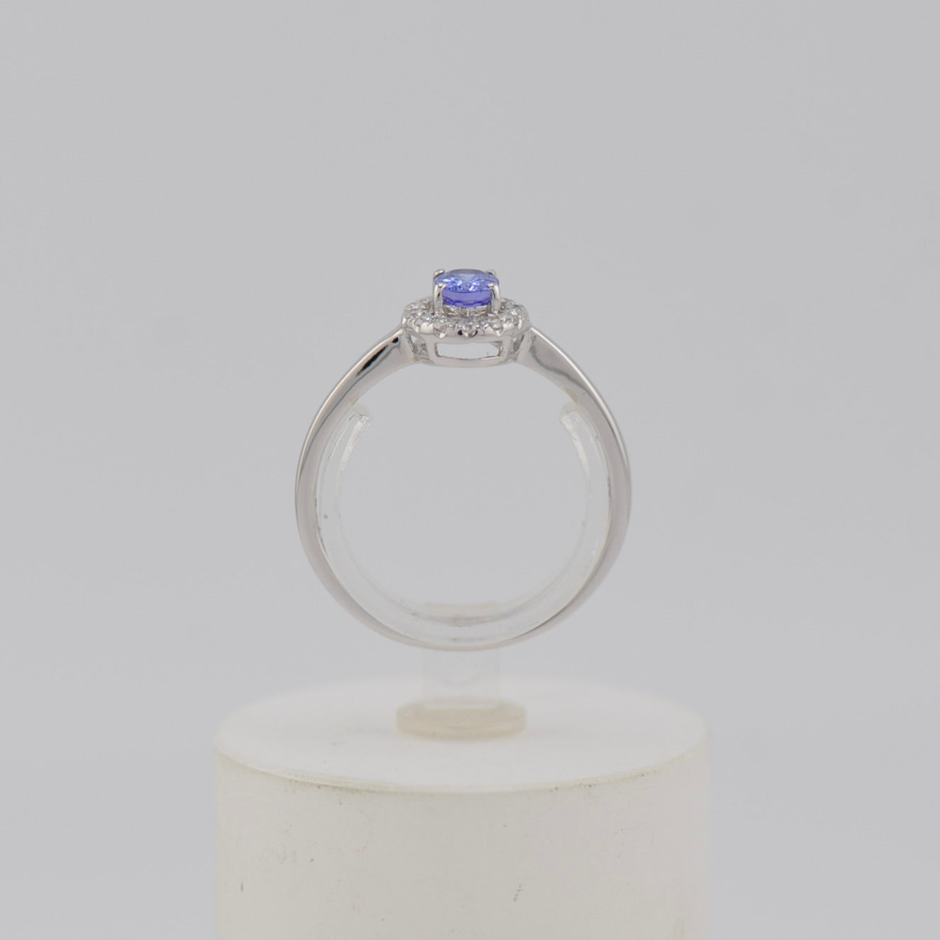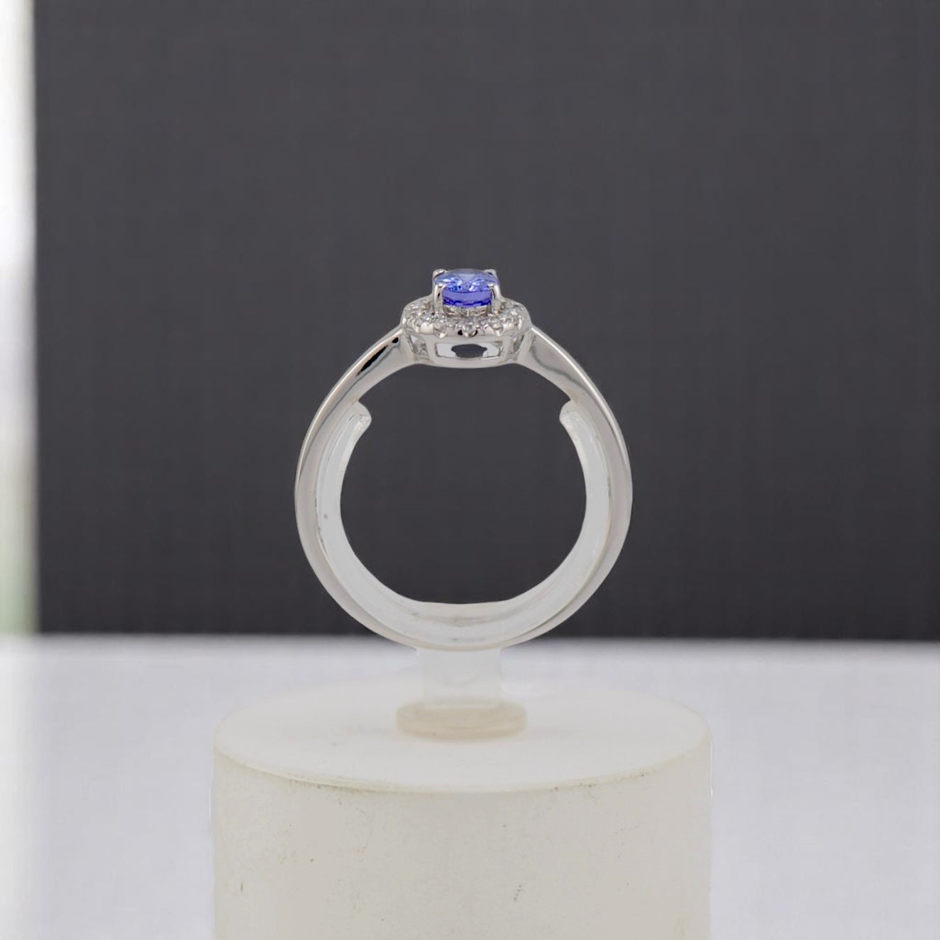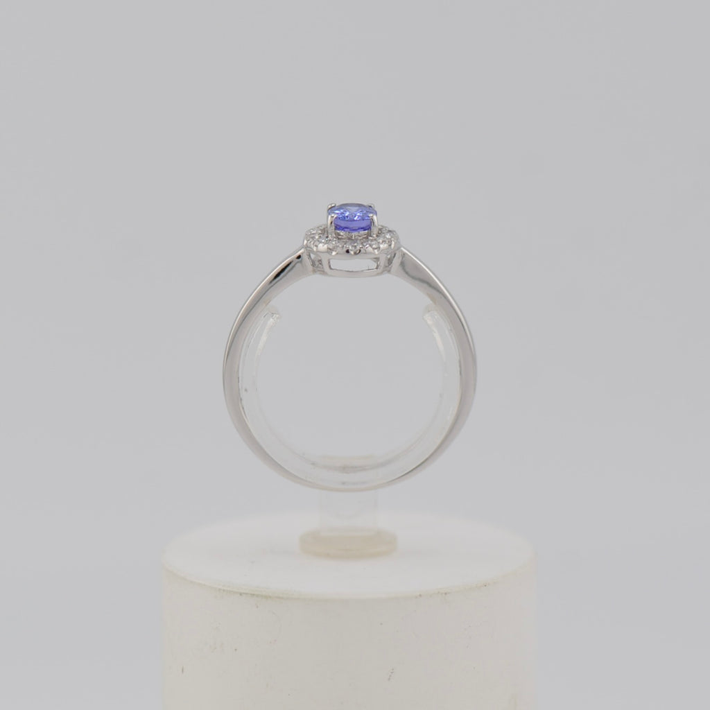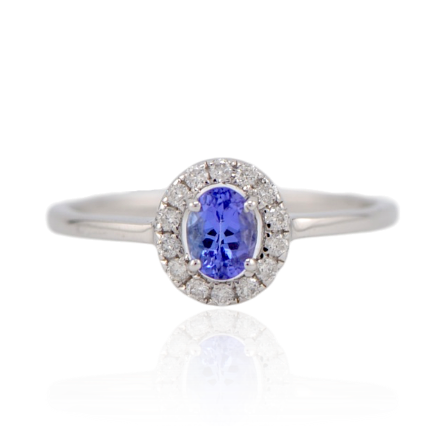 18k White Gold 6x4 Oval Genuine Tanzanite and Diamond Halo Ring