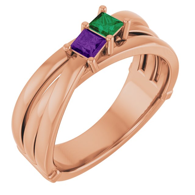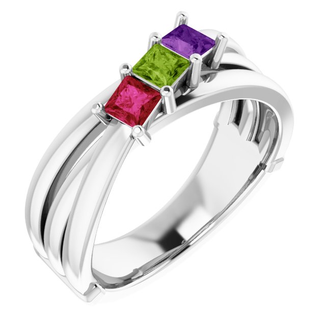 Crossed Band Square Stone Mother's Family Birthstone Ring