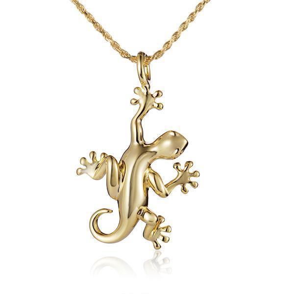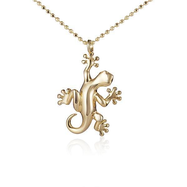 This 14K solid yellow gold pendant features our original gecko motif inspired by Hawaii's gold dust day gecko known for eating annoying bugs and being totally adorable!
