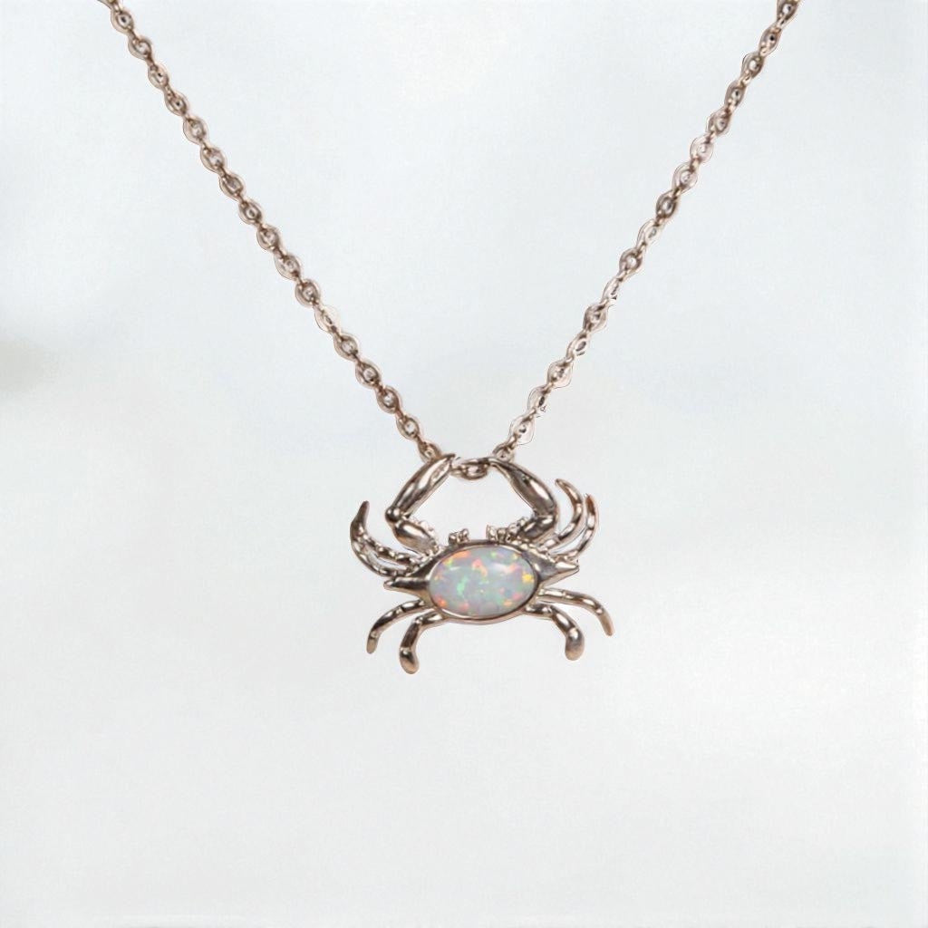 This .925 sterling silver pendant highlights our original blue crab design, set with sustainable white opal. Native to the Atlantic Coast, the blue crab’s scientific name, Callinectes sapidus, means "beautiful savory swimmer" in Latin. The crab symbolizes the importance of lowering your defenses for trusted individuals while maintaining emotional balance. Each pendant is unique, with natural variations in the opal’s pattern.