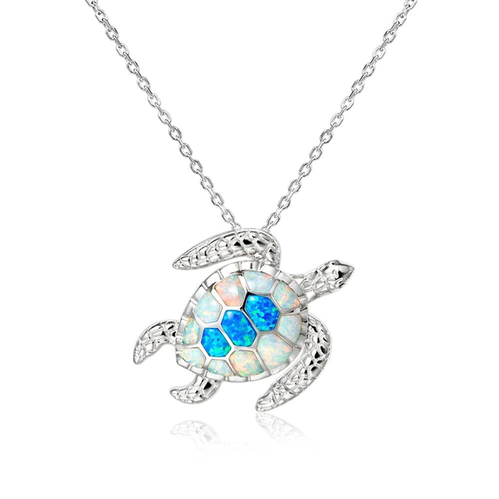 Alamea Blue and White Opal Hana Honu Turtle Pendant