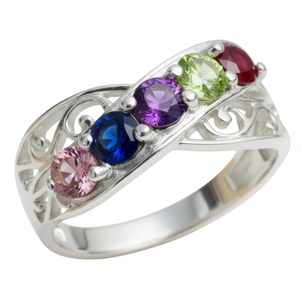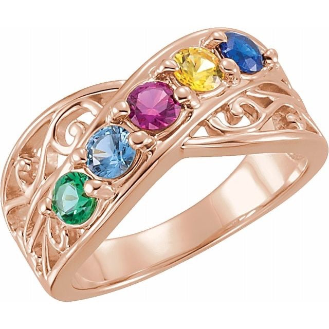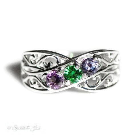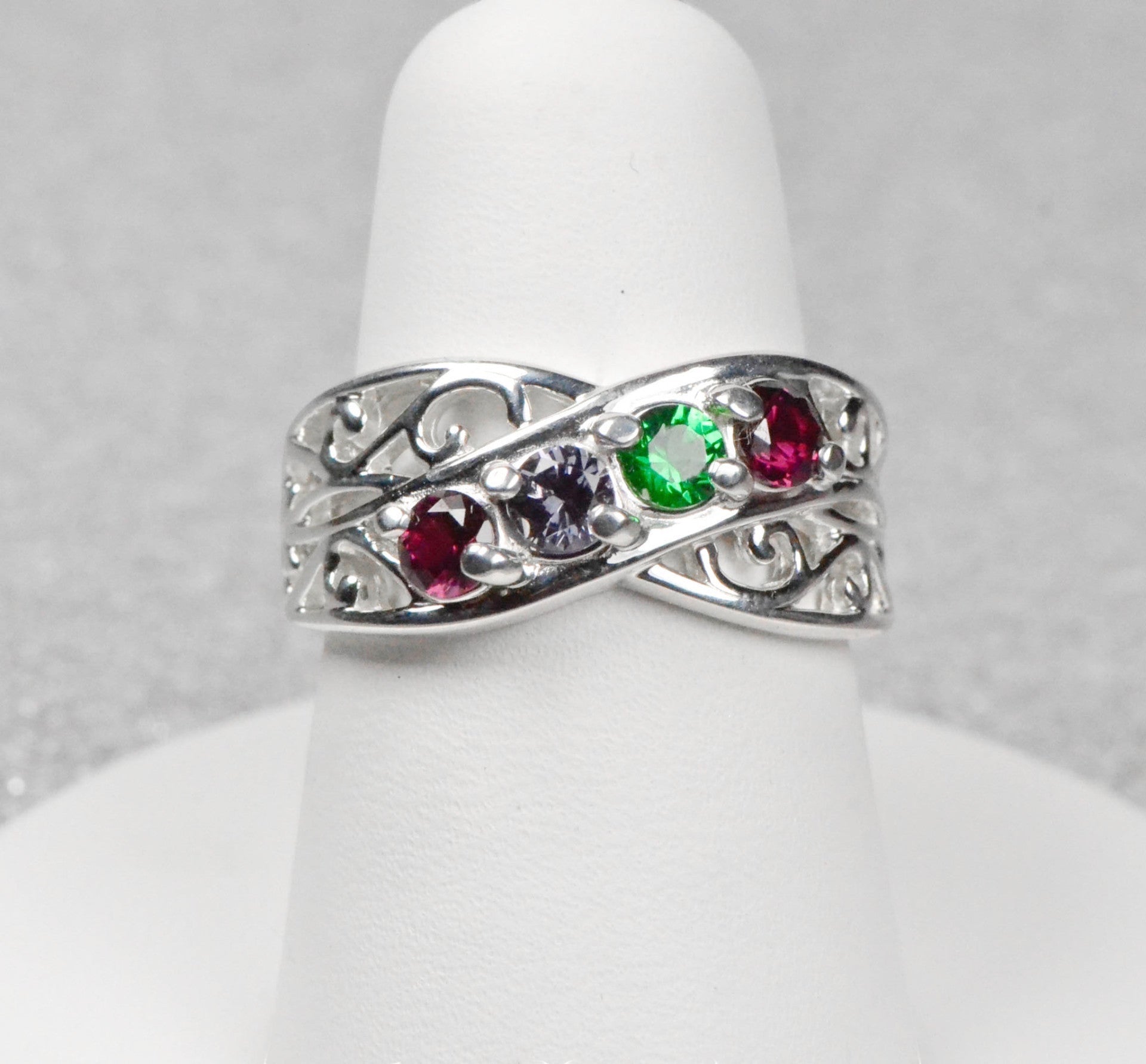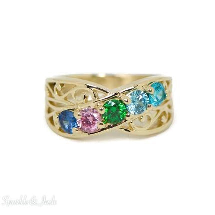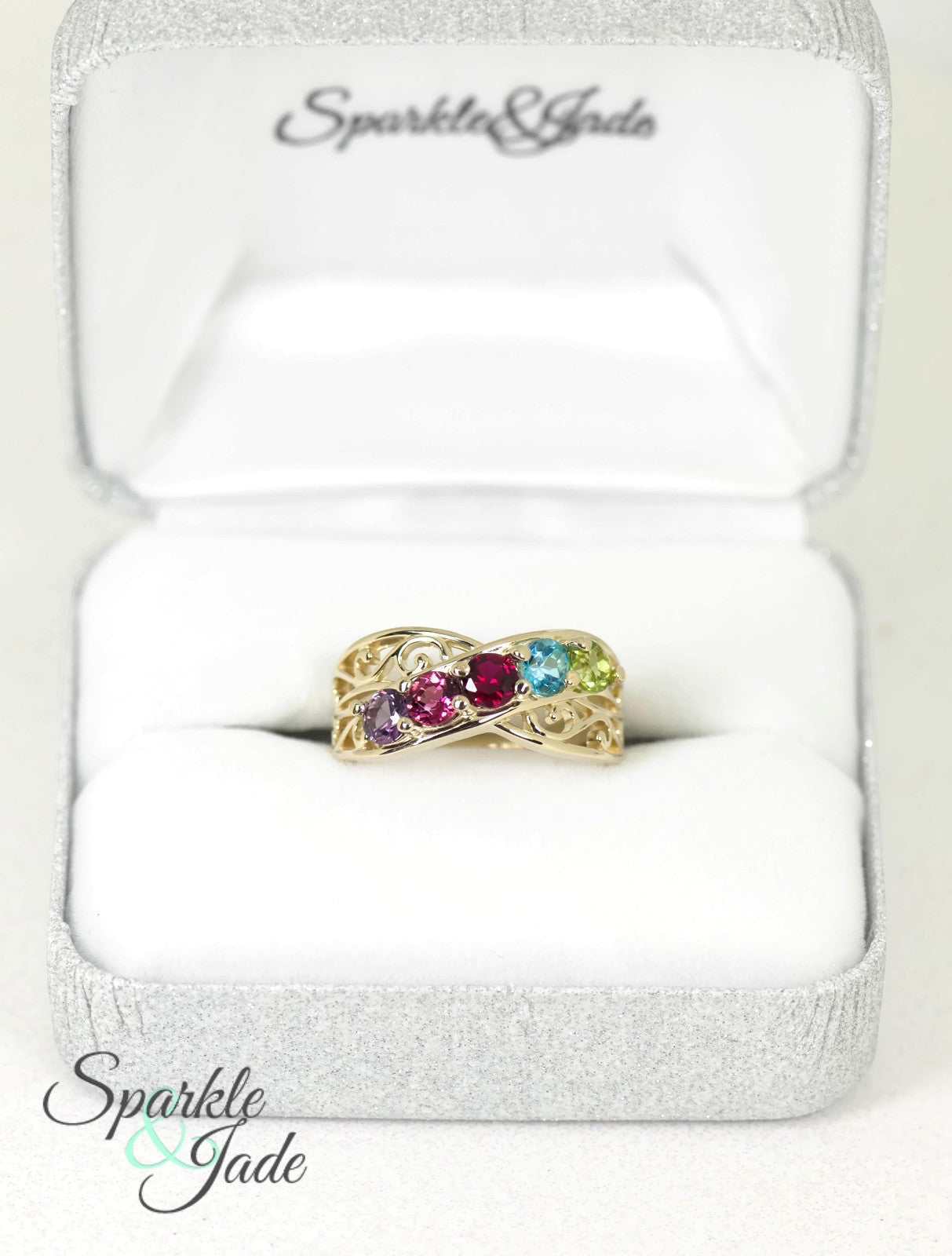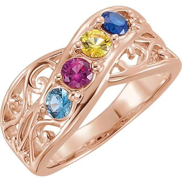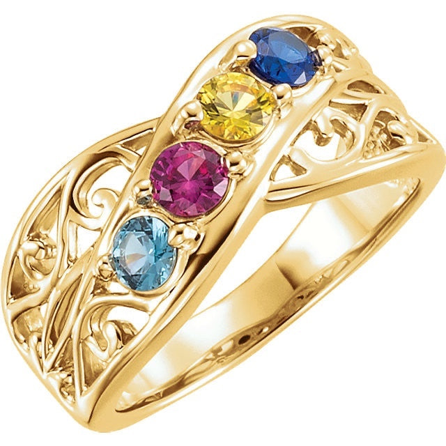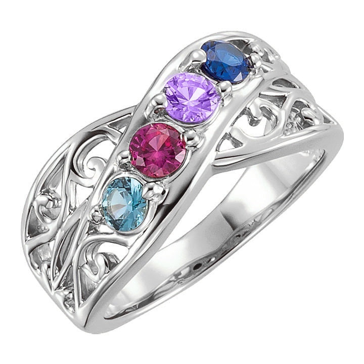 Filigree Lined 4mm Stone Mother's Family Birthstone Ring
