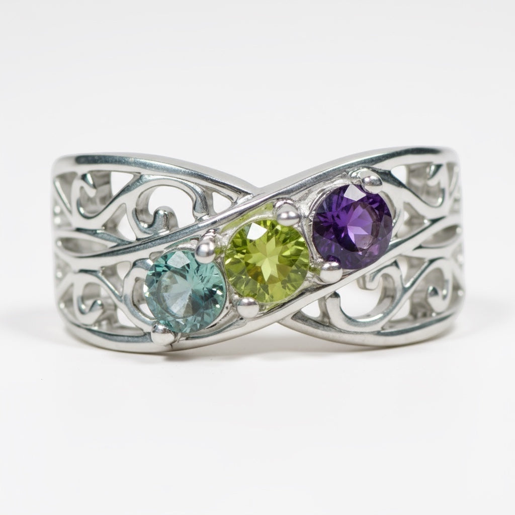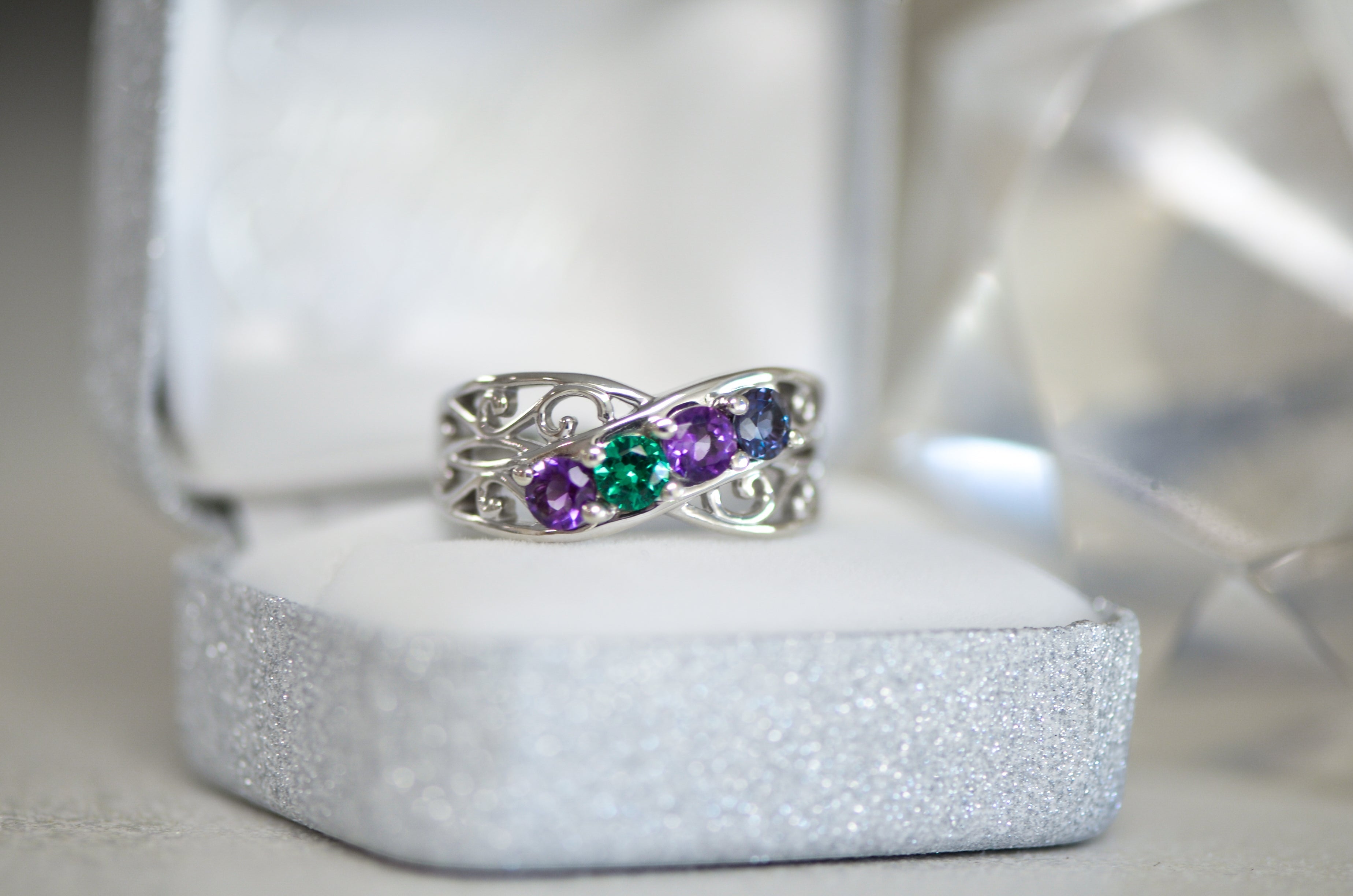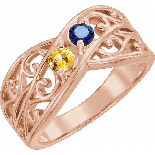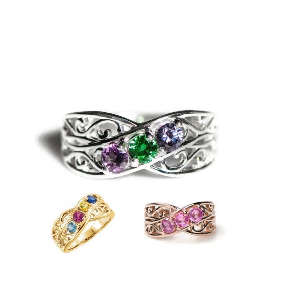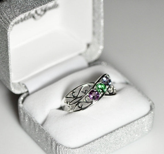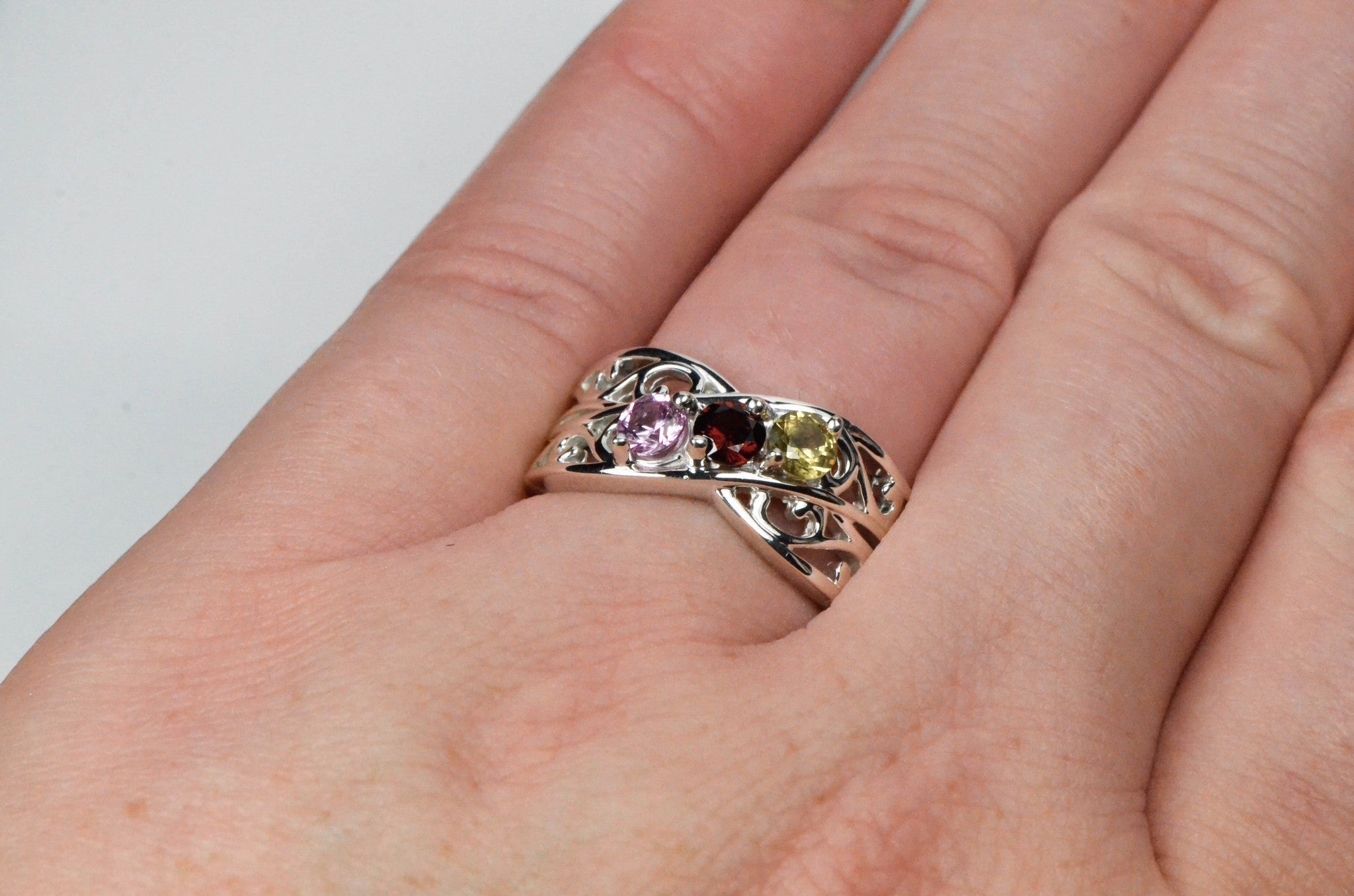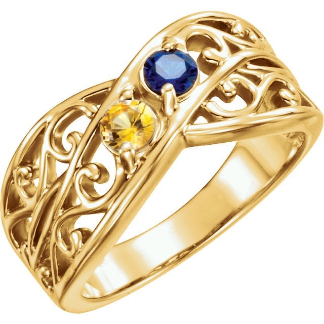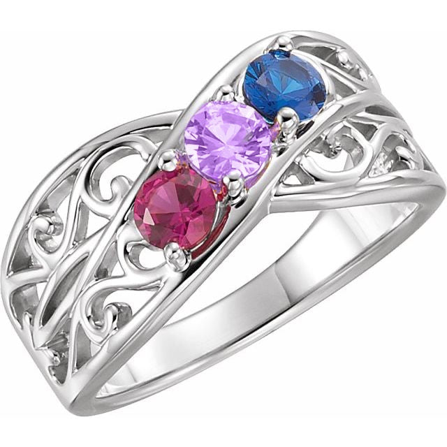 Filigree Lined 4mm Stone Mother's Family Birthstone Ring