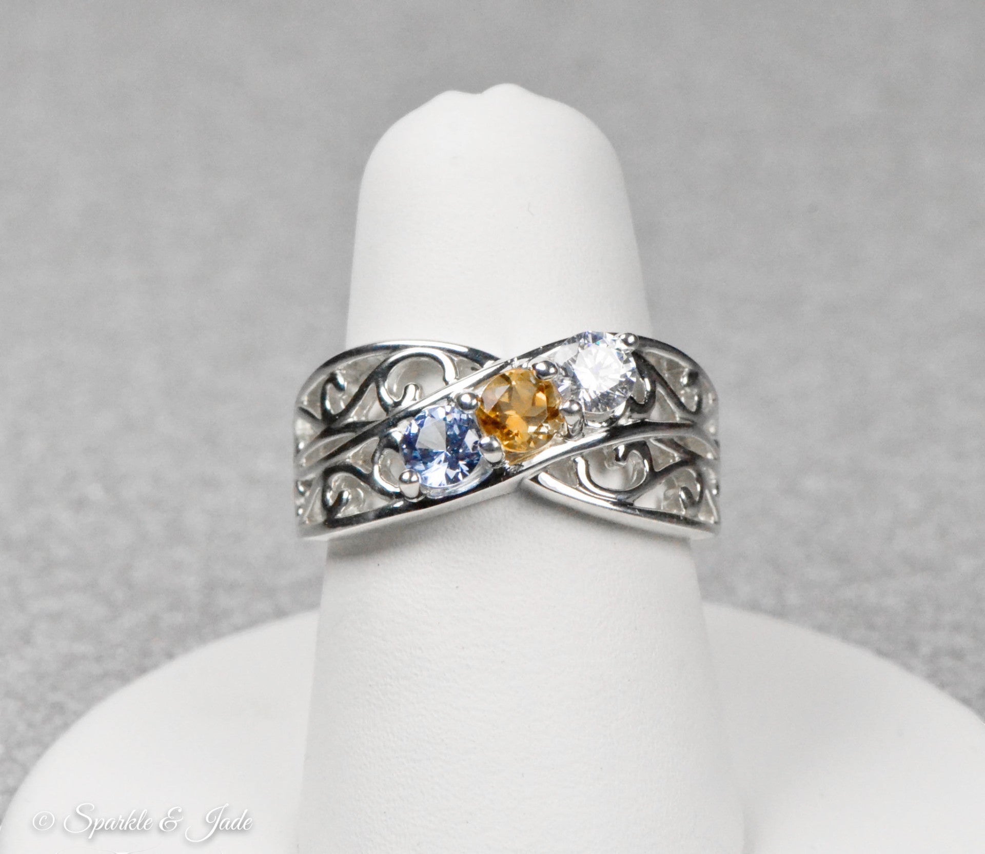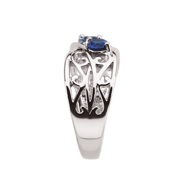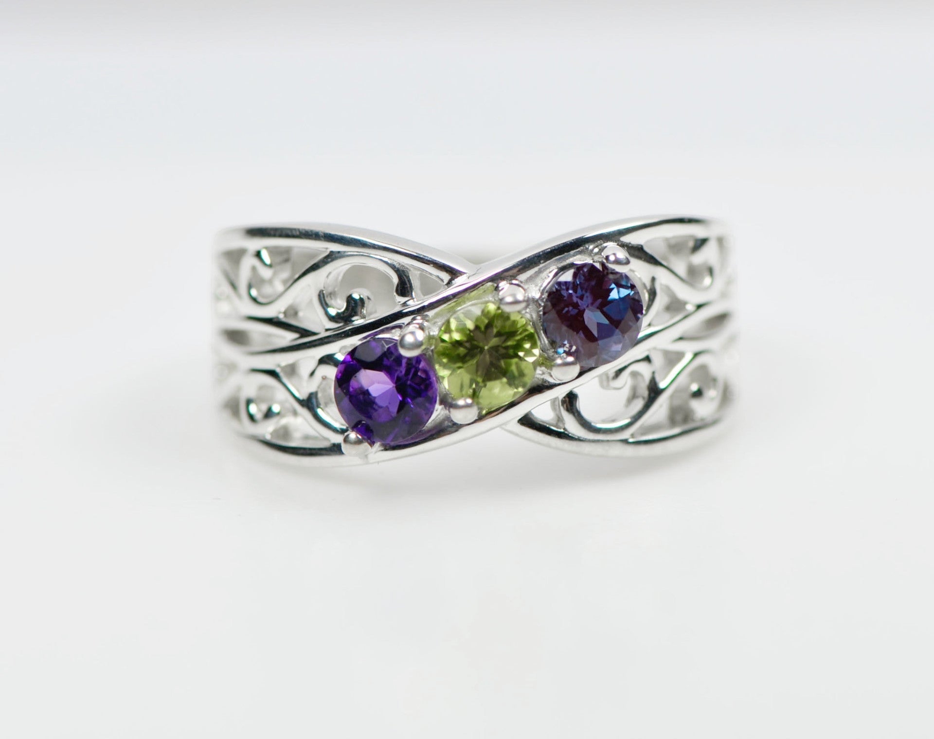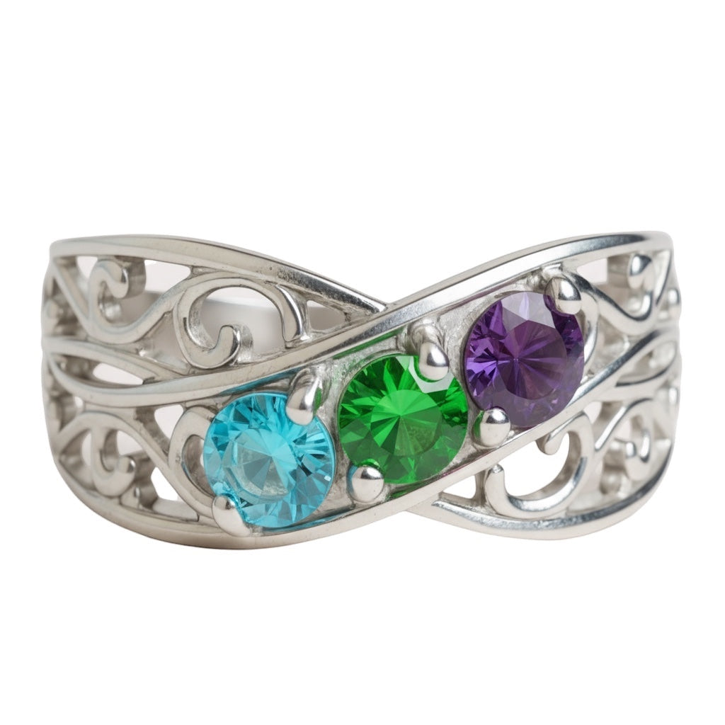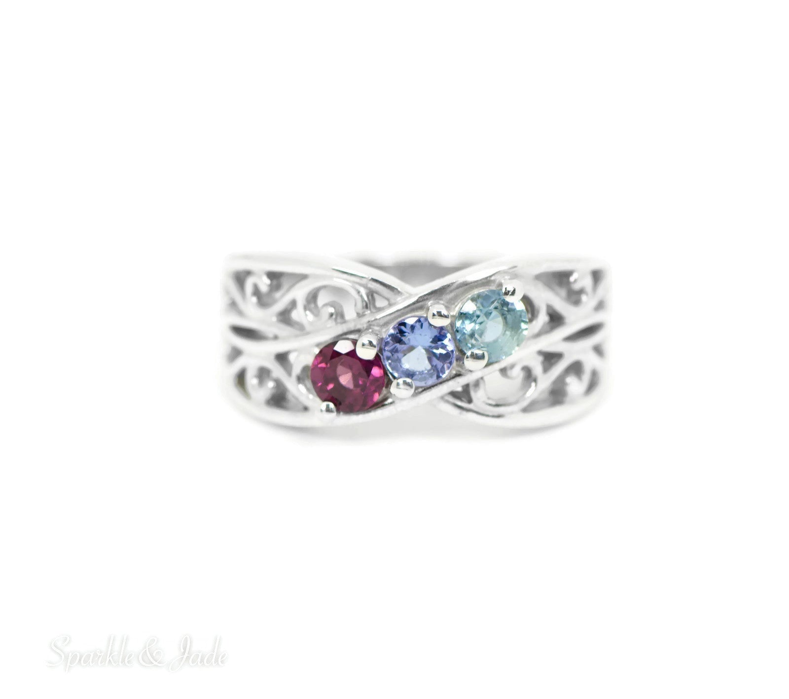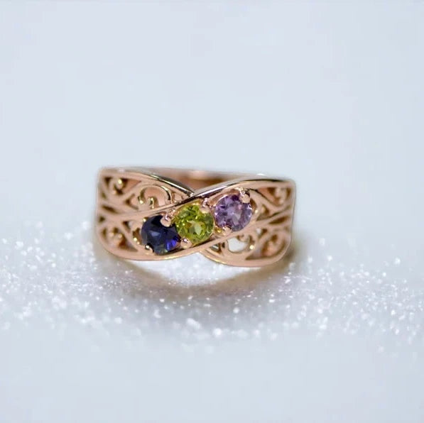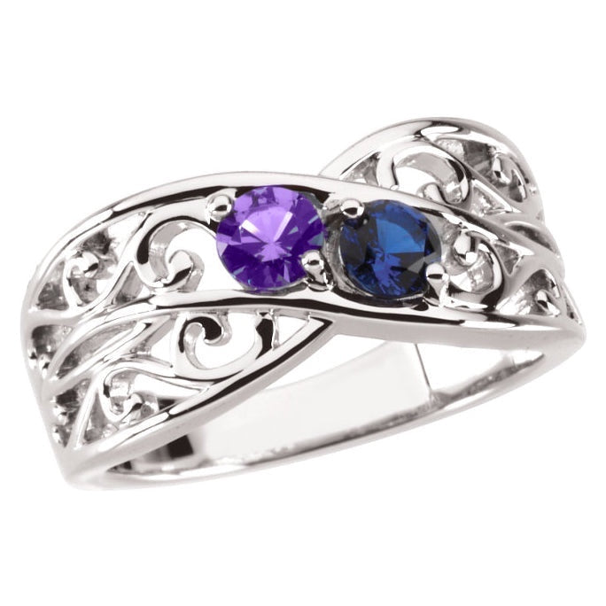 Filigree Lined 4mm Stone Mother's Family Birthstone Ring