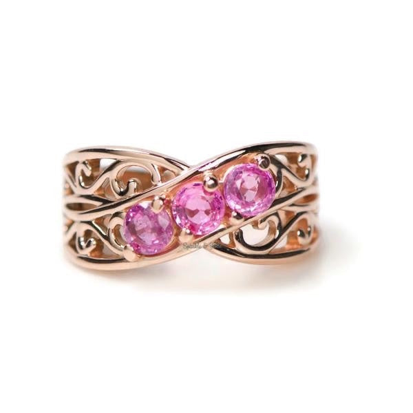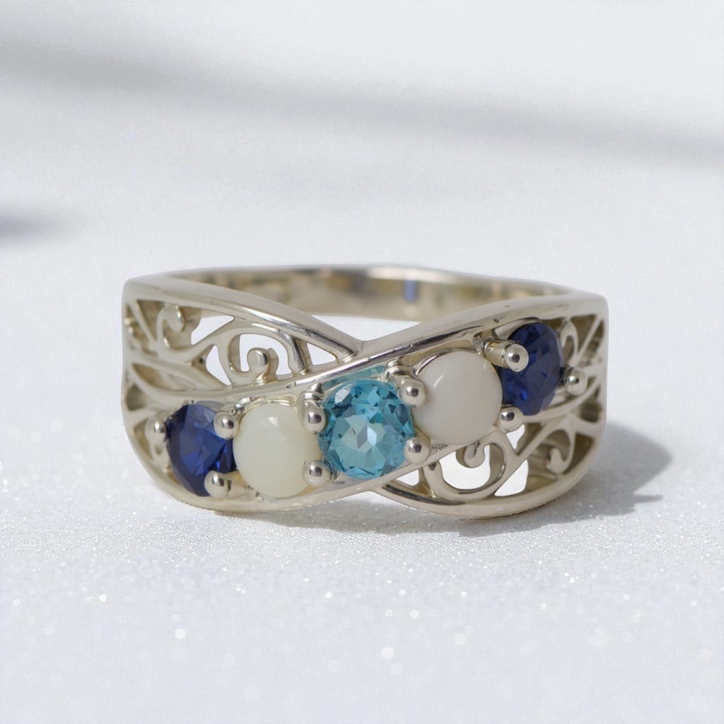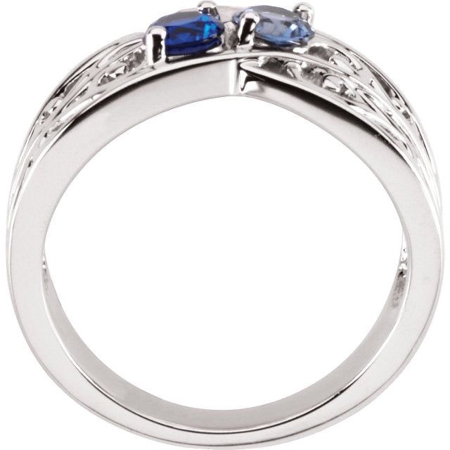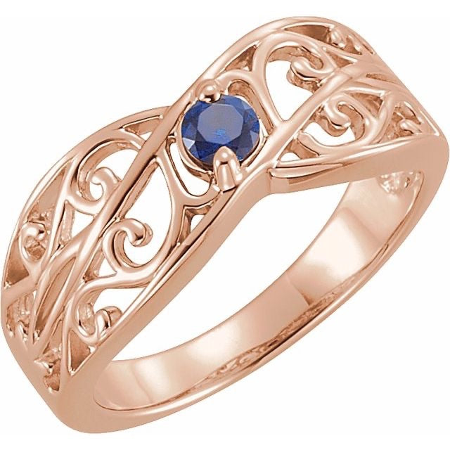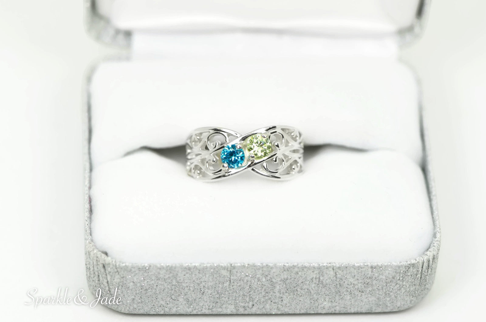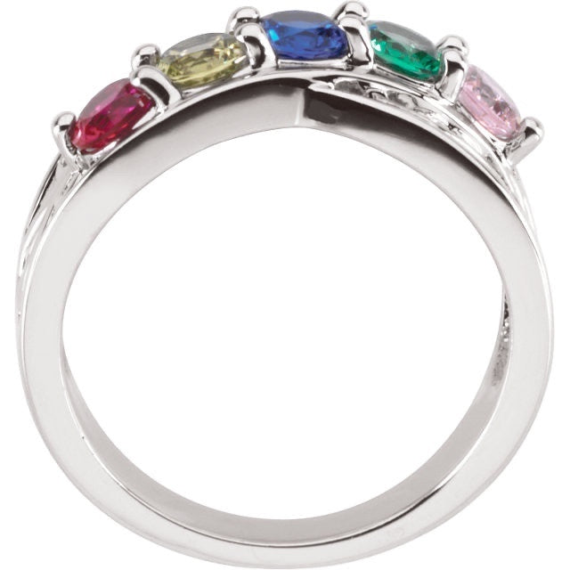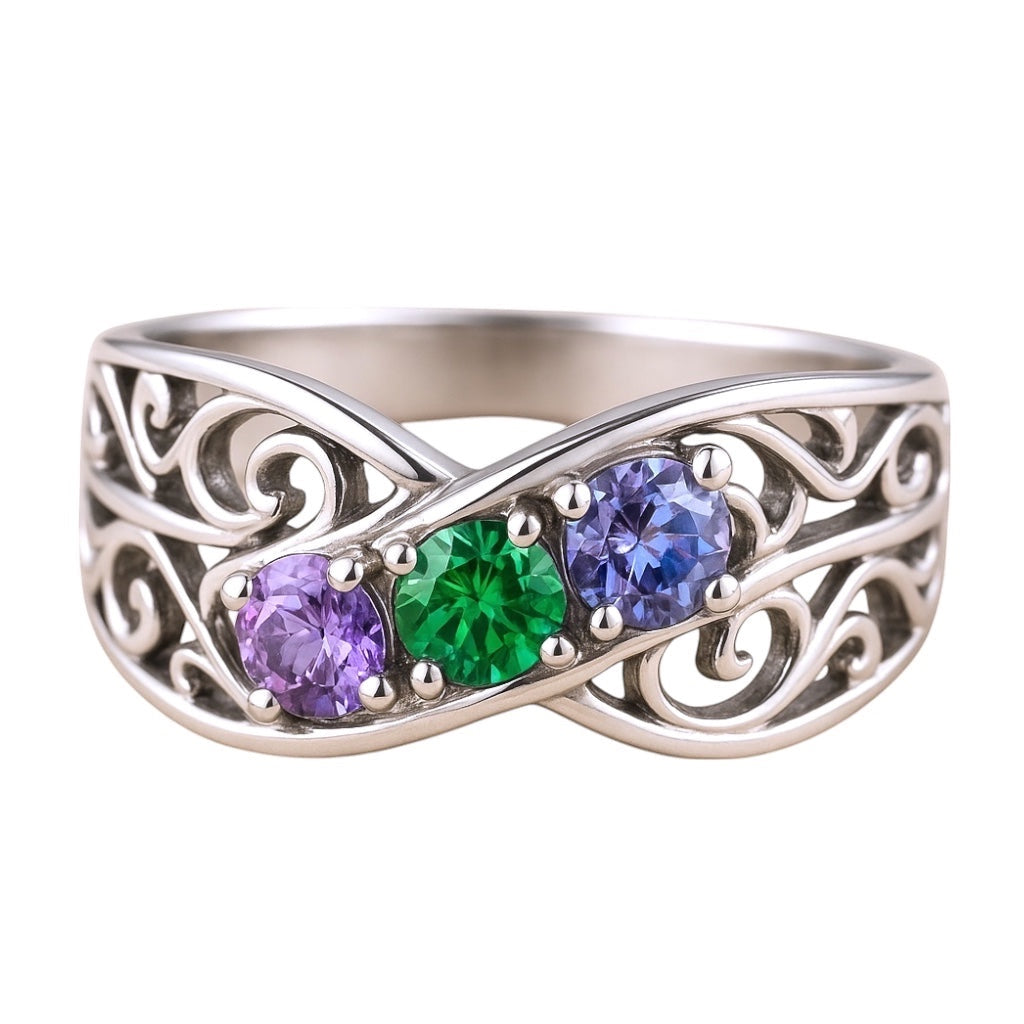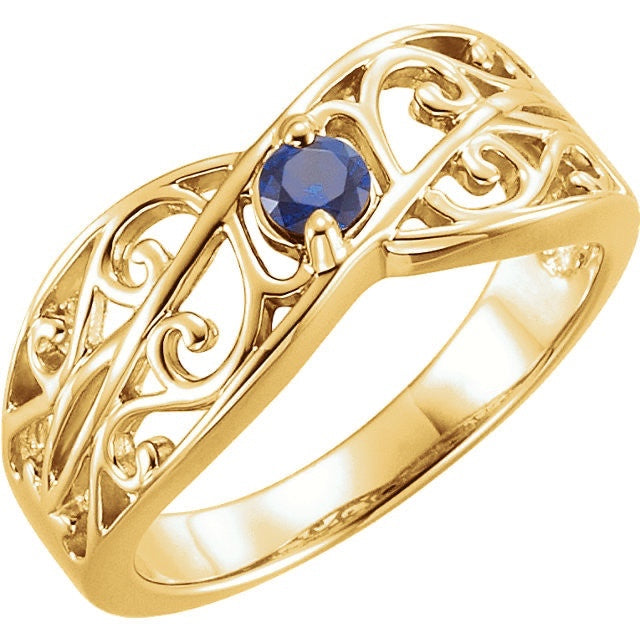 Filigree Lined 4mm Stone Mother's Family Birthstone Ring