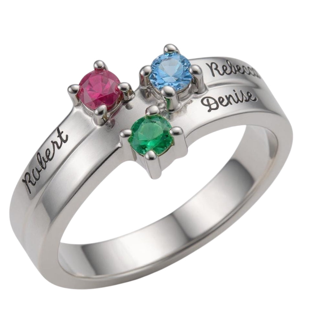 Layered Engraved Name Mother's Family Birthstone Ring
