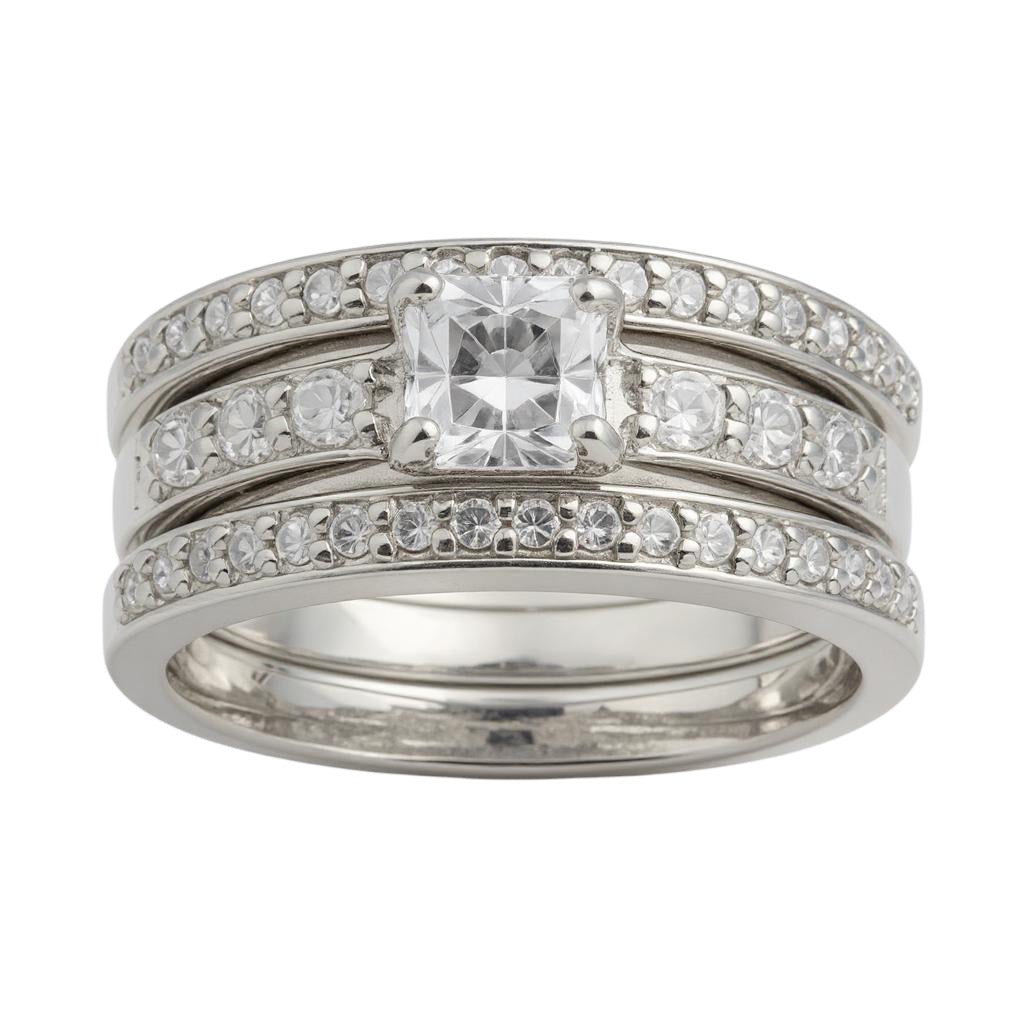Sterling Silver 3-Piece CZ Square Wedding Ring Set