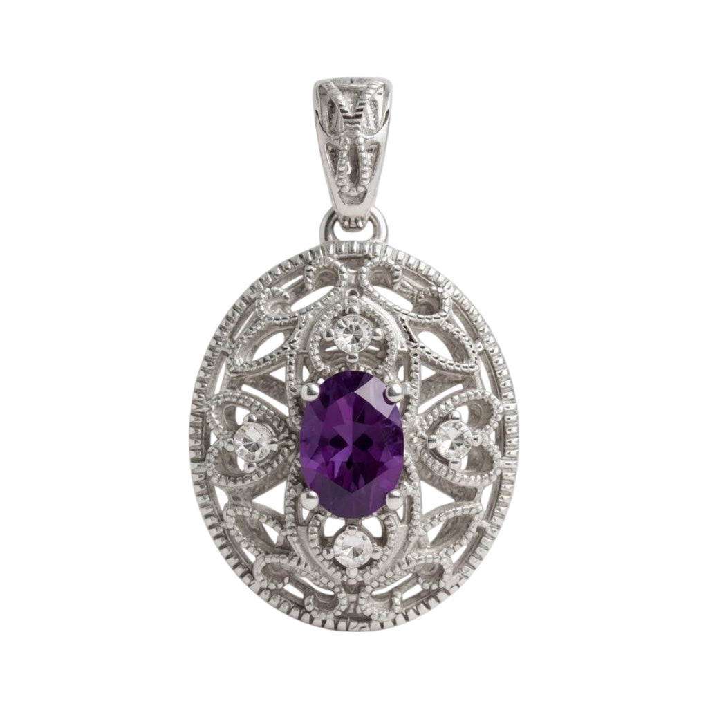Sterling Silver Amethyst And White Topaz Oval Filigree Teardrop Pendant