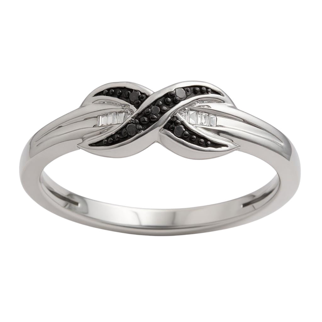Sterling Silver Black & White Diamond Infinity Knot Ring