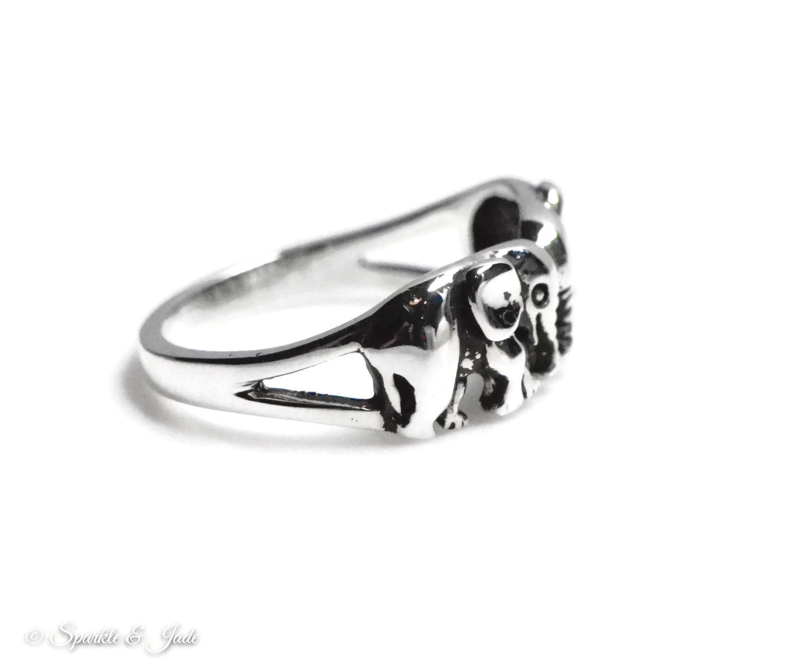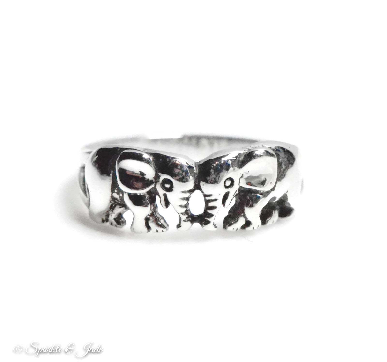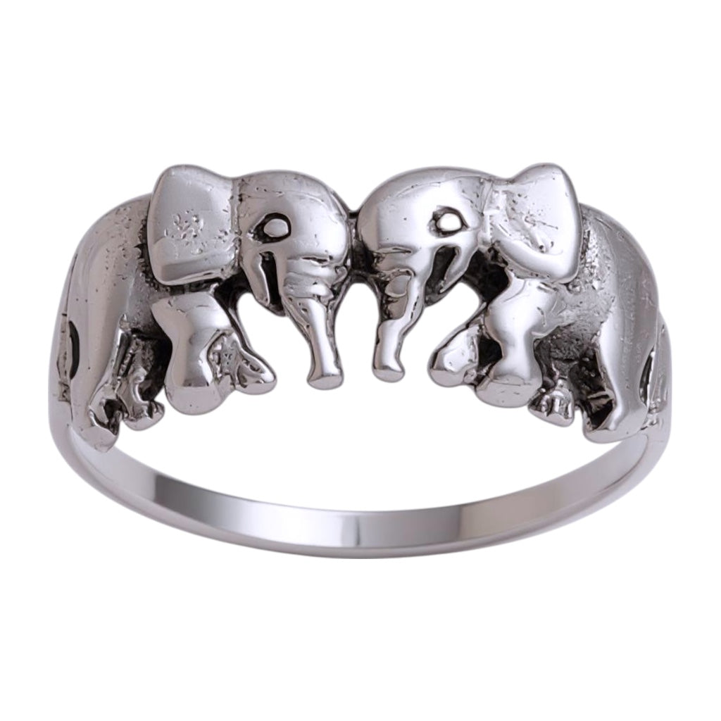 - .925 Sterling Silver ring with an antiqued oxidized effect featuring two adorable elephants.