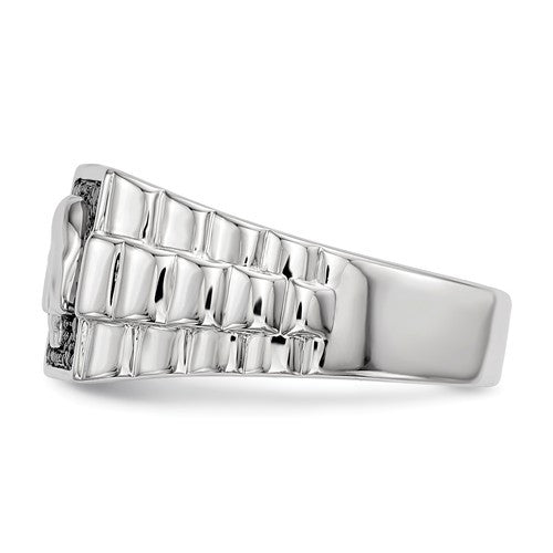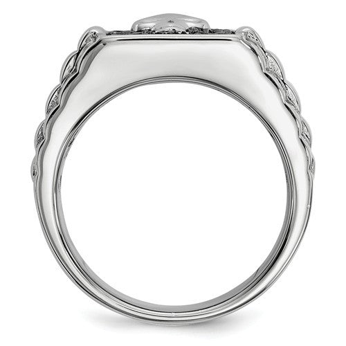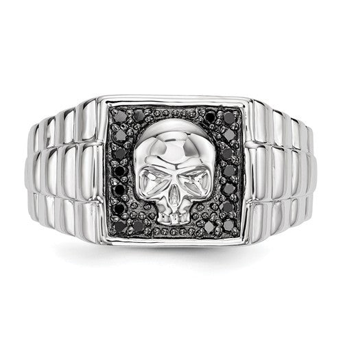 Sterling Silver Black Diamond Square Skull Men's Ring