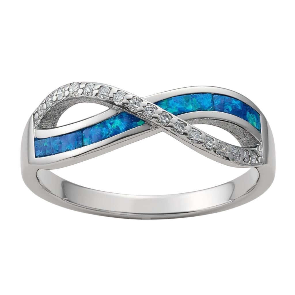 Sterling Silver CZ and Blue Opal Infinity Ring