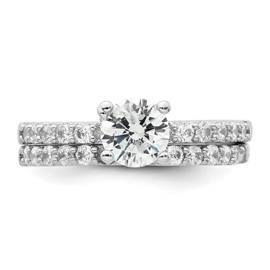Sterling Silver CZ Solitaire Engagement Ring and Band Set