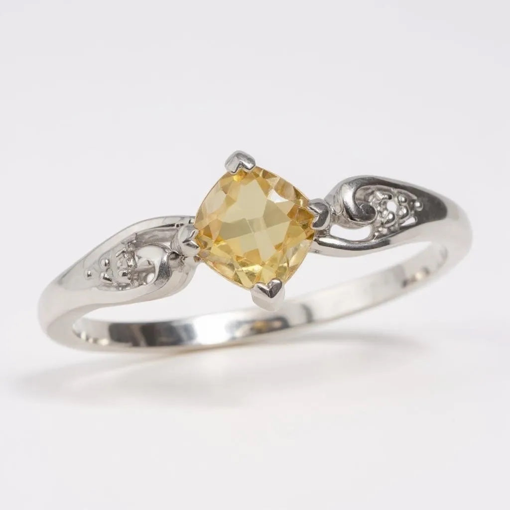 Sterling Silver Cushion Cut Gemstone and Diamond Rings