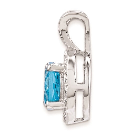 Sterling Silver Diamond And Round Gemstone Halo-Style Pendants