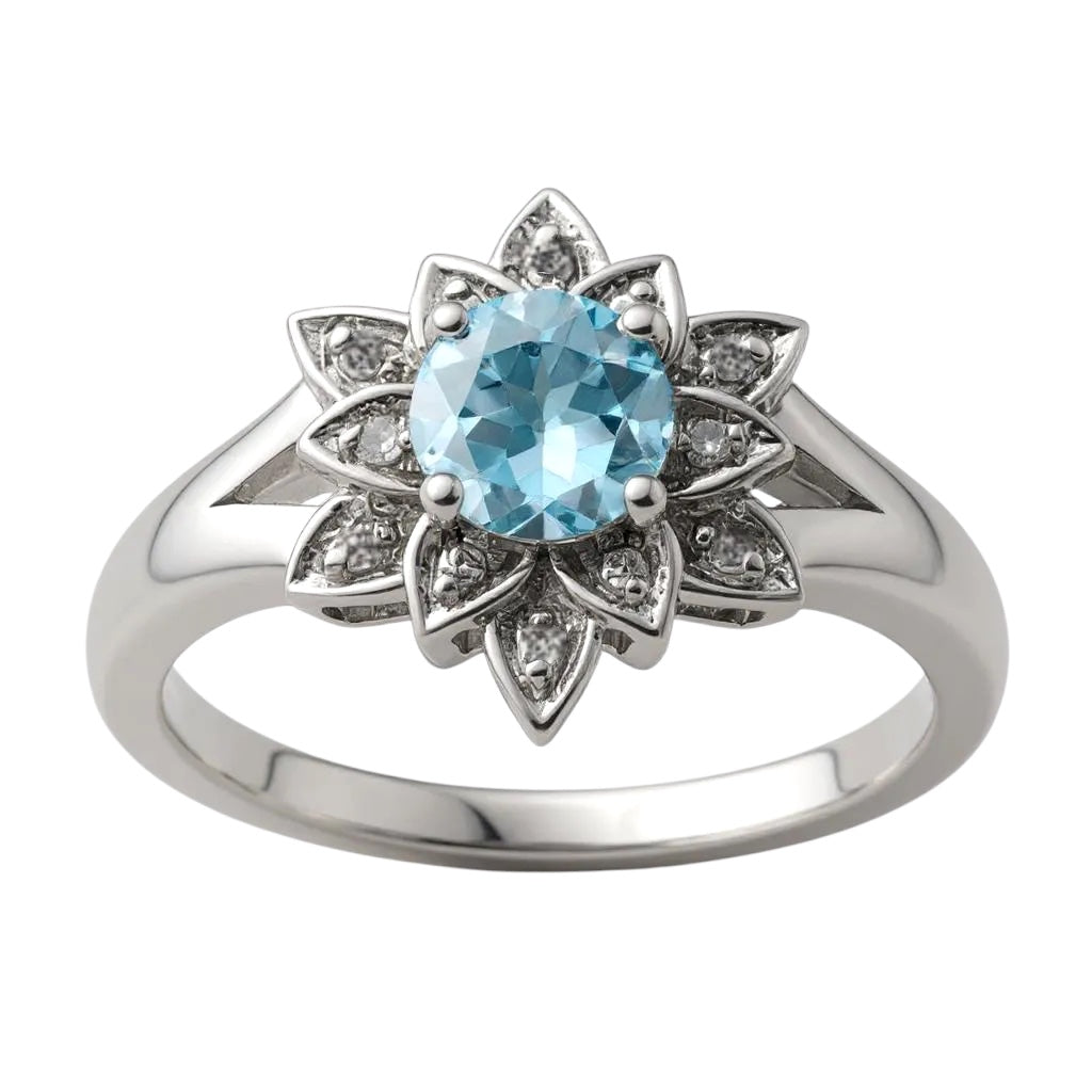 Sterling Silver Diamond & Round Gemstone Lotus Flower Rings