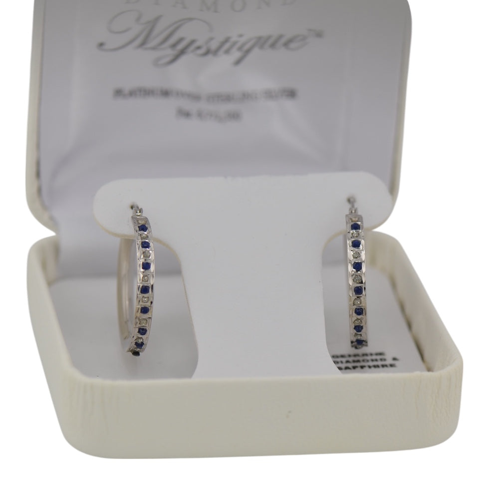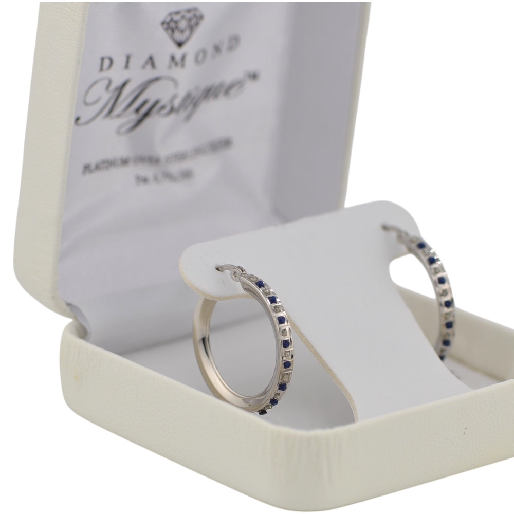 Sterling Silver Diamond & Blue Sapphire Round Hoop Earrings