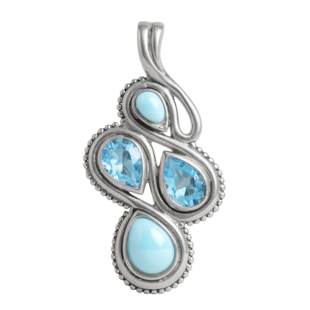 Sterling Silver Larimar and Blue Topaz Slide Pendant