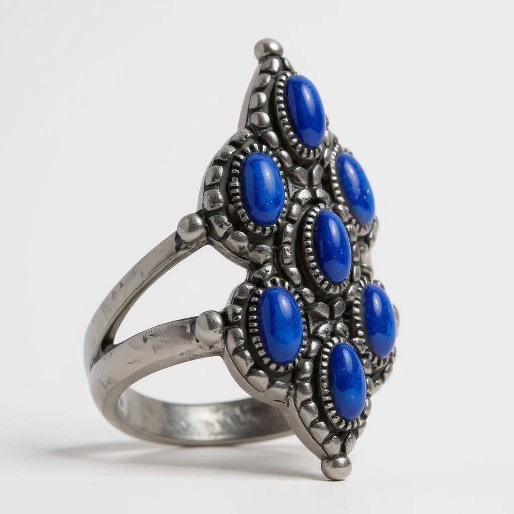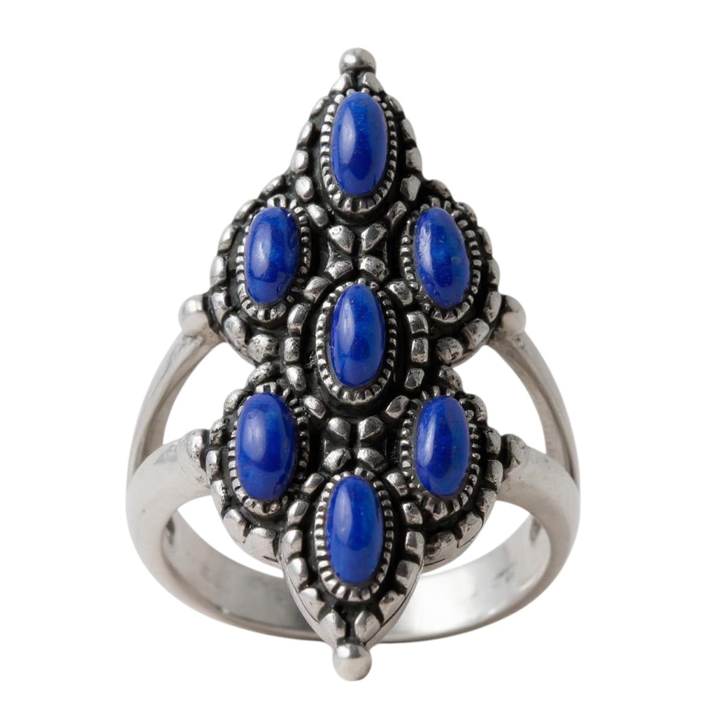 Sterling Silver Ornate 7-Stone Lapis Ring