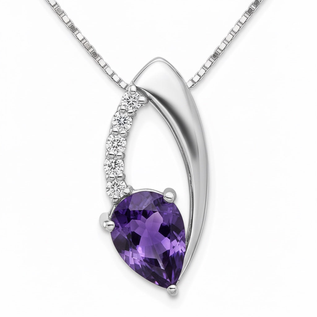 Sterling Silver Pear Gemstone & CZ Pendants