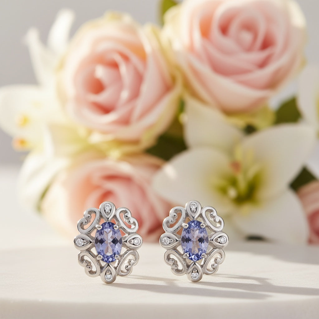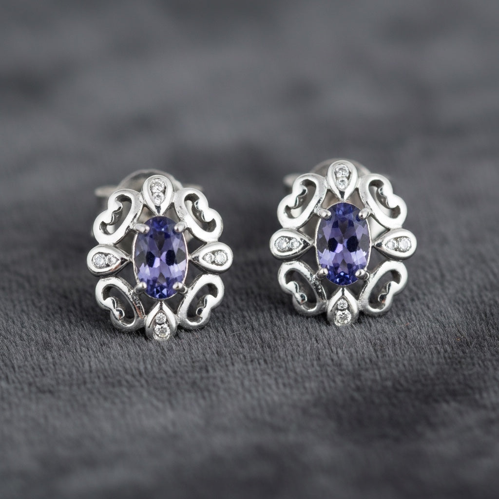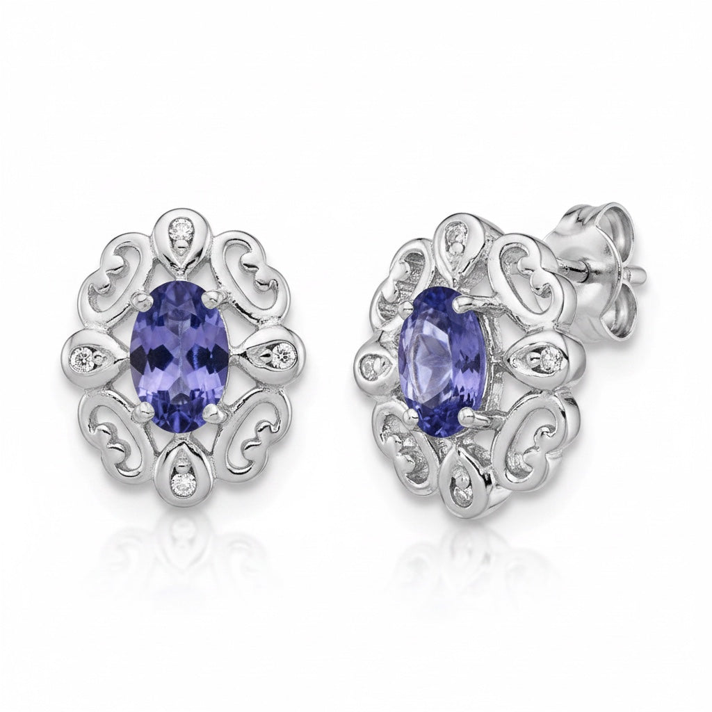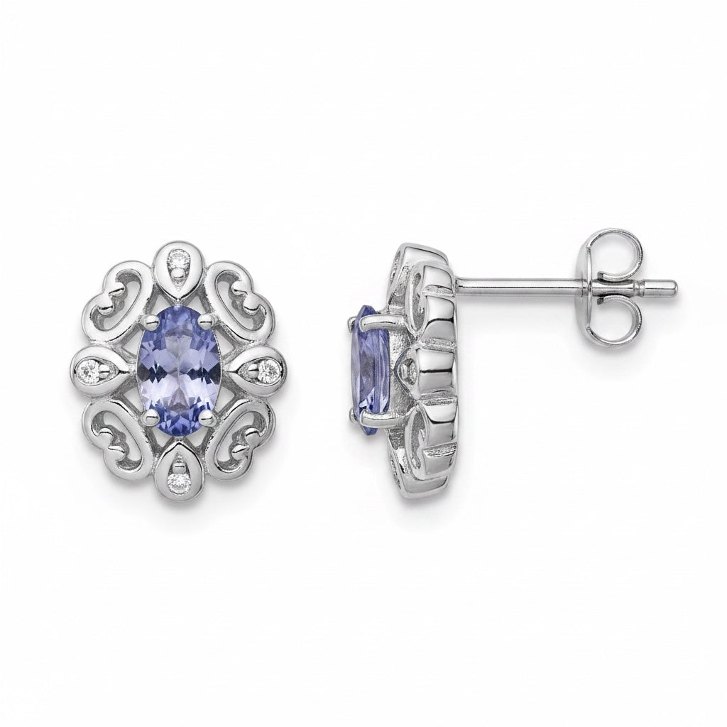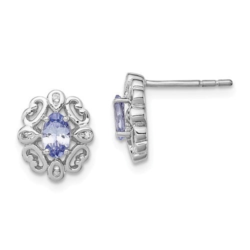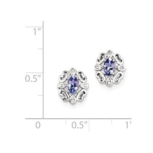 Sterling Silver Diamond & Tanzanite Oval Earrings