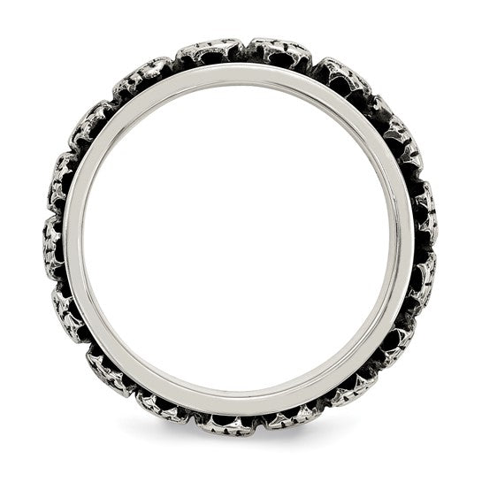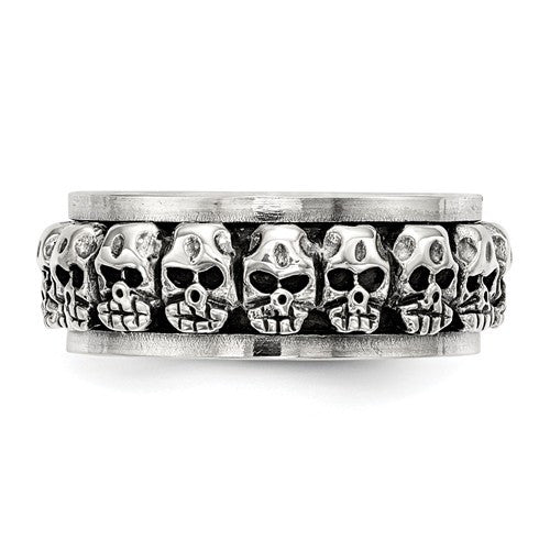 Sterling Silver Spinning Center Antiqued Skull Spin Ring