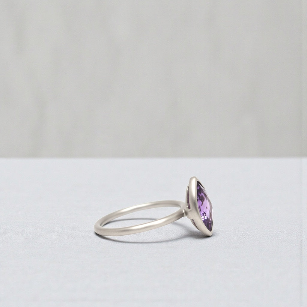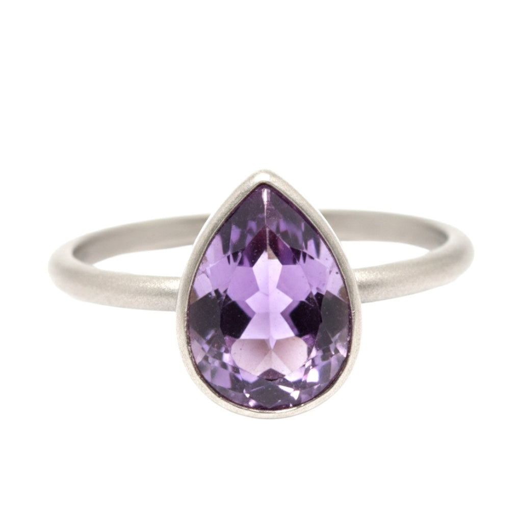 Silver Matte Finish Stackable Faceted Pear Amethyst Ring