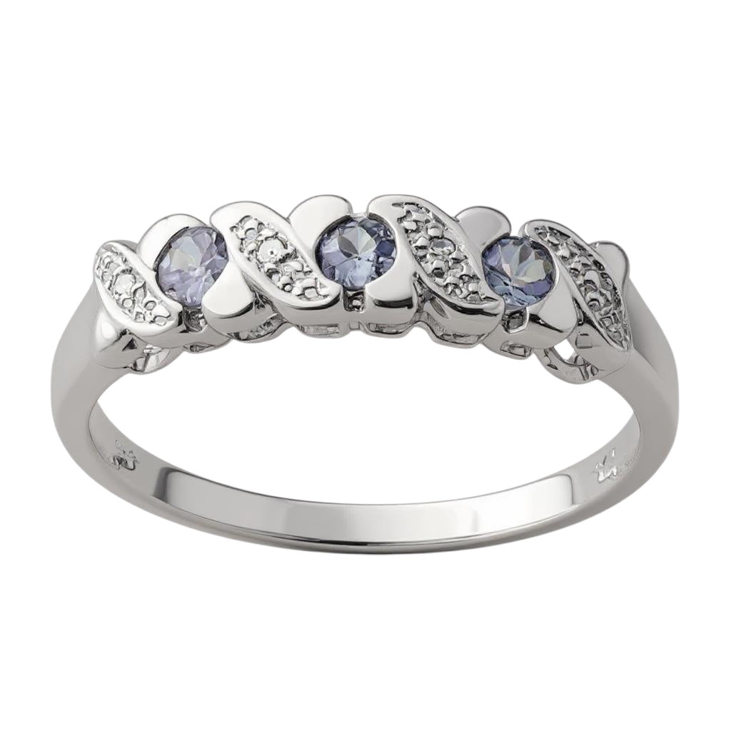 Sterling Silver 3 Stone Round Tanzanite & Diamond Ring