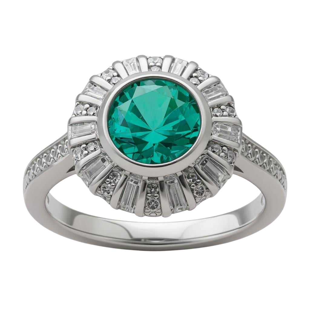 Sterling Silver White and Teal CZ Halo Ring