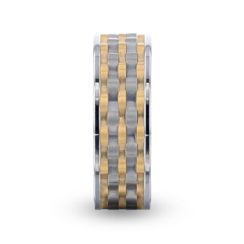 MONTROSE Wavy Gold And Gunmetal Texture Pattern Inlaid Titanium Men's Wedding Band With Flat Polished Profile - 8mm